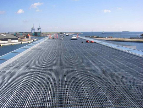 碼頭鋼格柵板   1:高強(qiáng)度,輕結(jié)構(gòu)   2:防腐能力強(qiáng),經(jīng)久耐用   3:外形美觀,表面亮澤   4:不積污物,不積雨雪,不積水,自清潔,易于維護(hù)   5:通風(fēng),采光,散熱,防滑,防爆性好 ···